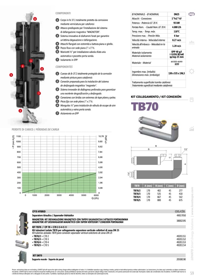 Kit tubazioni isolate TB70 per collegamento separatore verticale collettori di zona DN 25