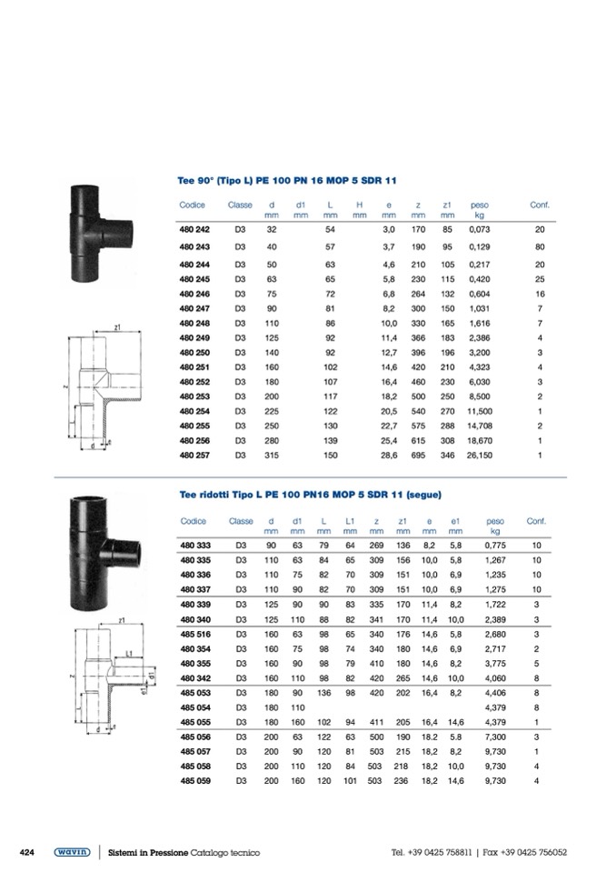Tee ridotti Tipo L PE 100 PN16 MOP 5 SDR 11 (segue)