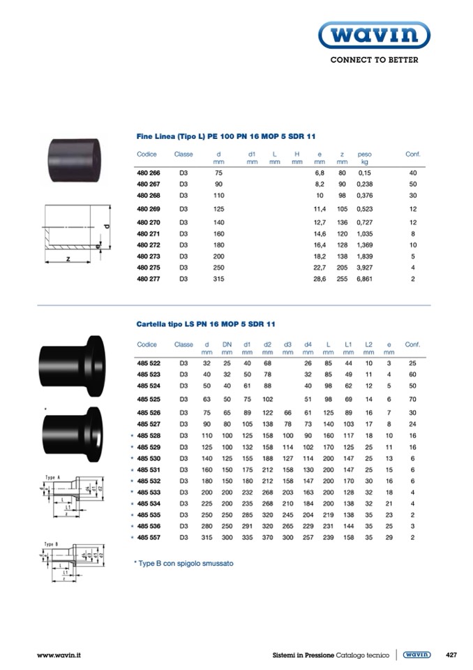 Cartella tipo LS PN 16 MOP 5 SDR 11