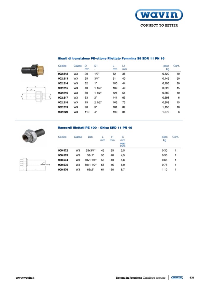 Raccordi filettati PE 100 - Ghisa SRD 11 PN 16