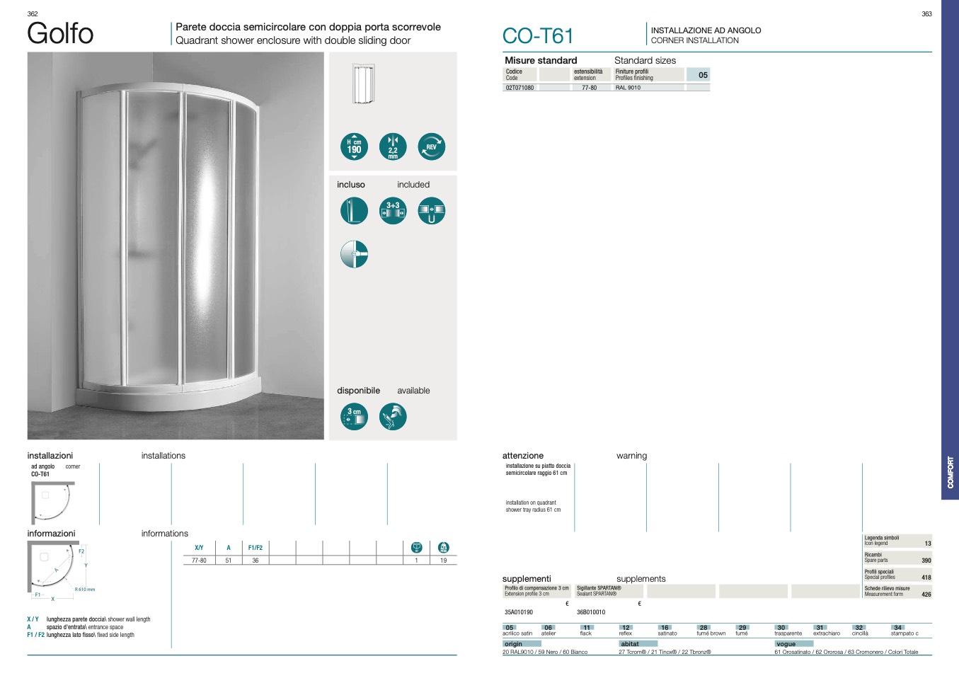 Parete doccia semicircolare con doppia porta scorrevole