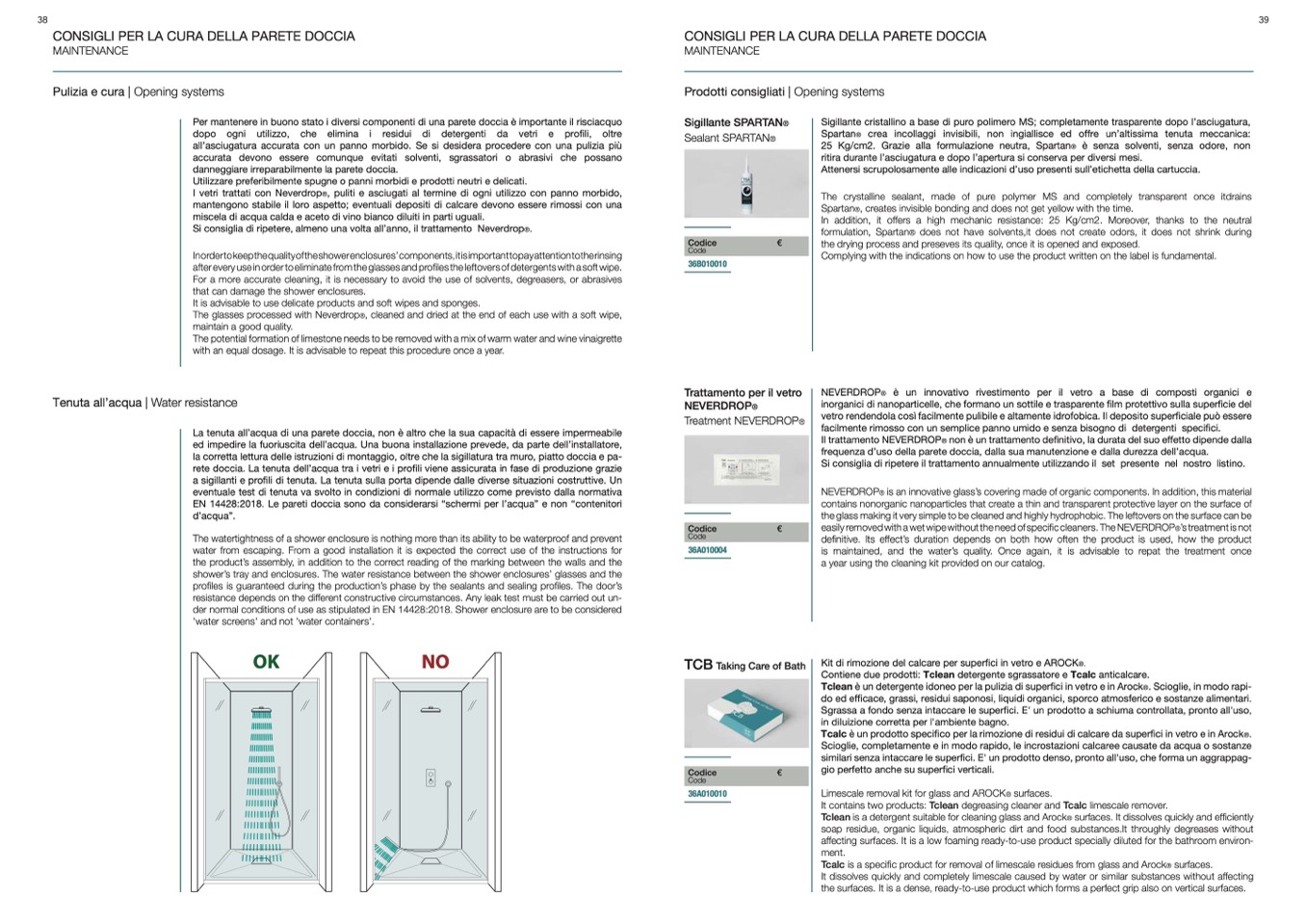 EN 14428:2018. Le pareti doccia sono da considerarsi “schermi per l’acqua” e non “contenitori