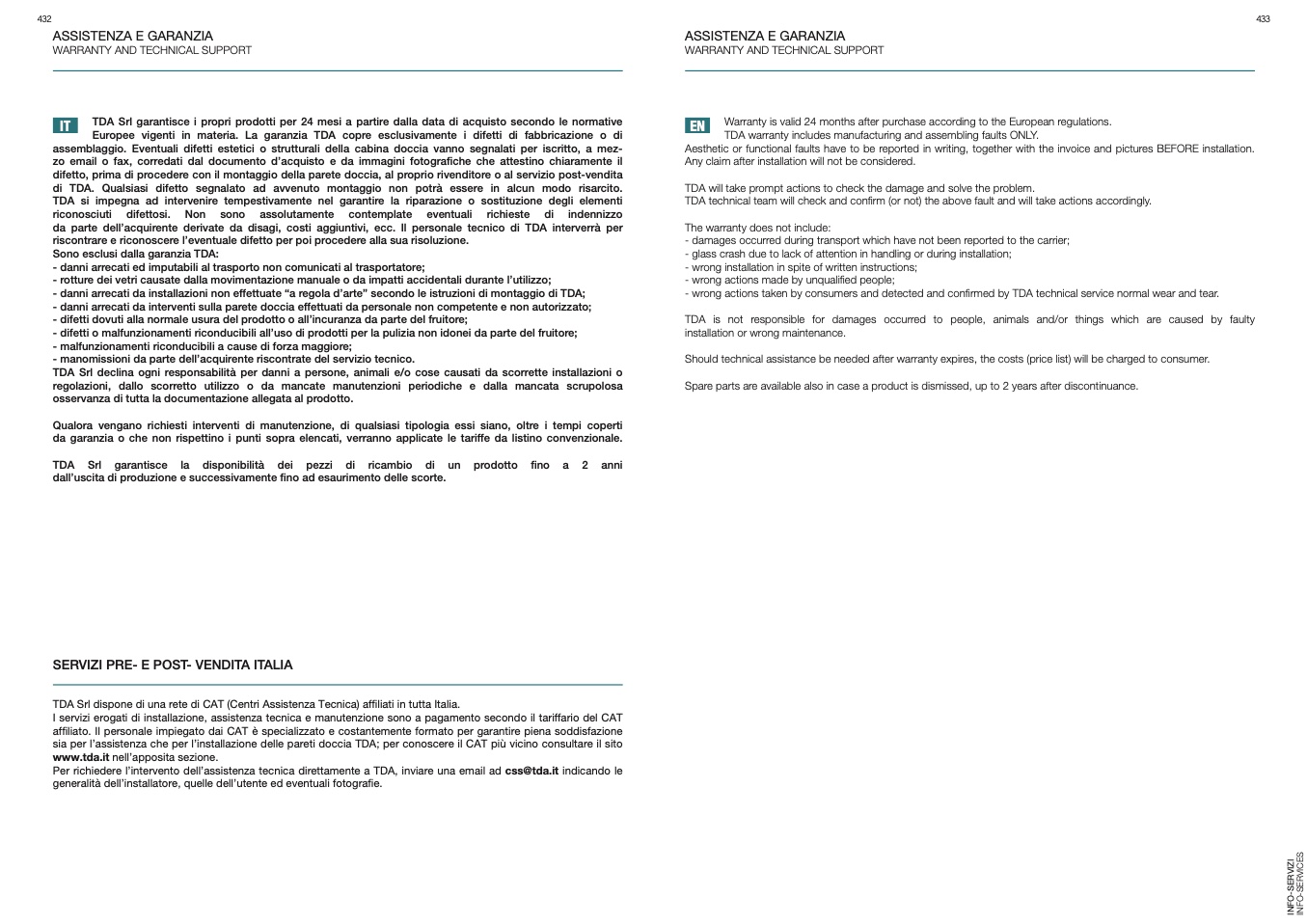 sia per l’assistenza che per l’installazione delle pareti doccia TDA; per conoscere il CAT più vicino consultare il sito