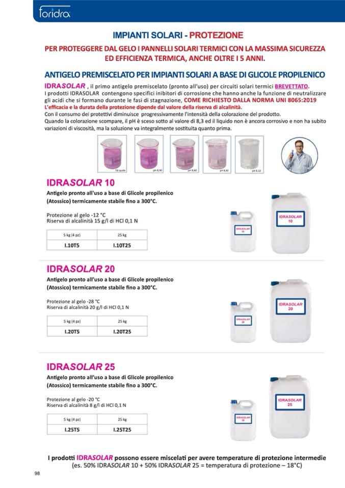 ANTIGELO PREMISCELATO PER IMPIANTI SOLARI A BASE DI GLICOLE PROPILENIC