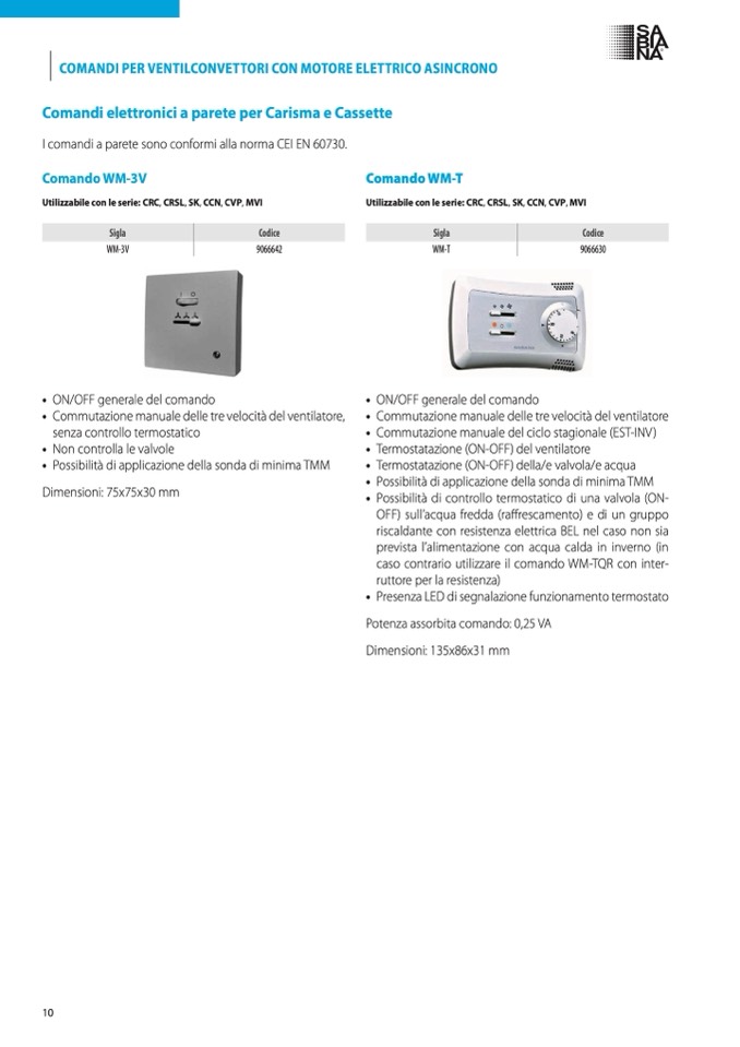 I comandi a parete sono conformi alla norma CEI EN 60730.