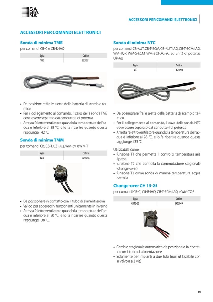• Per il collegamento al comando, il cavo della sonda NTC