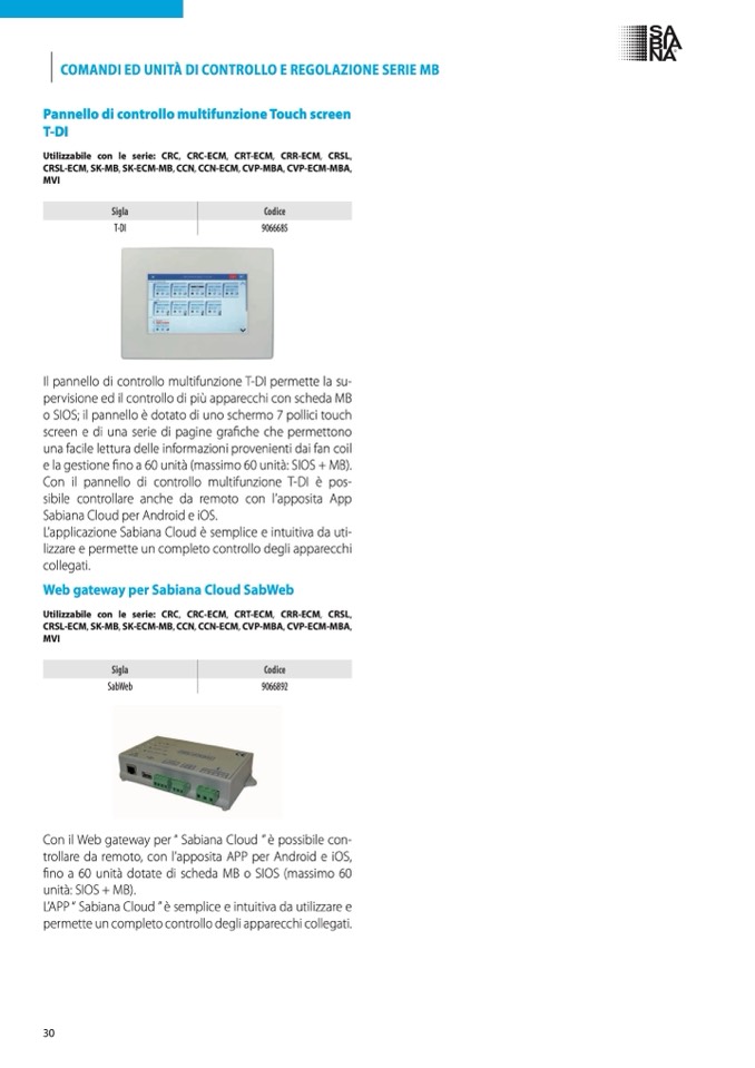 Con il Web gateway per “ Sabiana Cloud ”