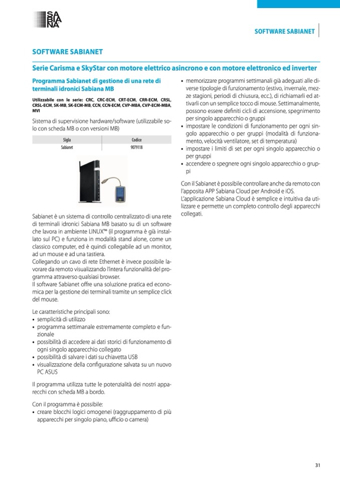 di terminali idronici Sabiana MB basato su di un software