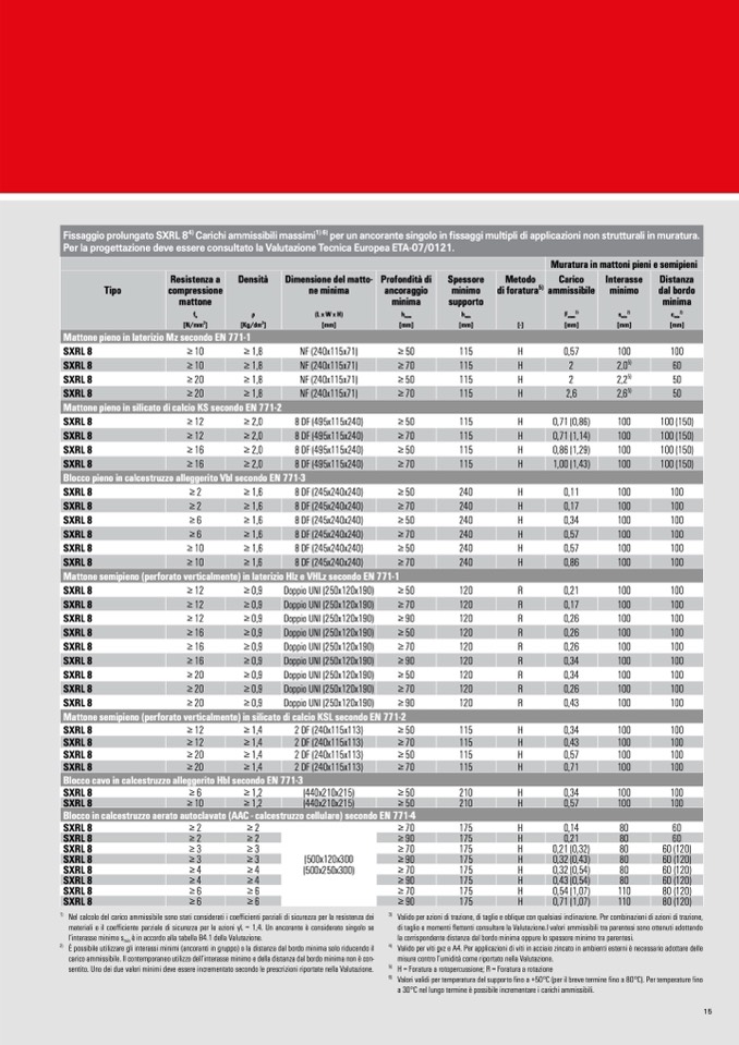 per un ancorante singolo in fissaggi multipli di applicazioni non strutturali in muratura.