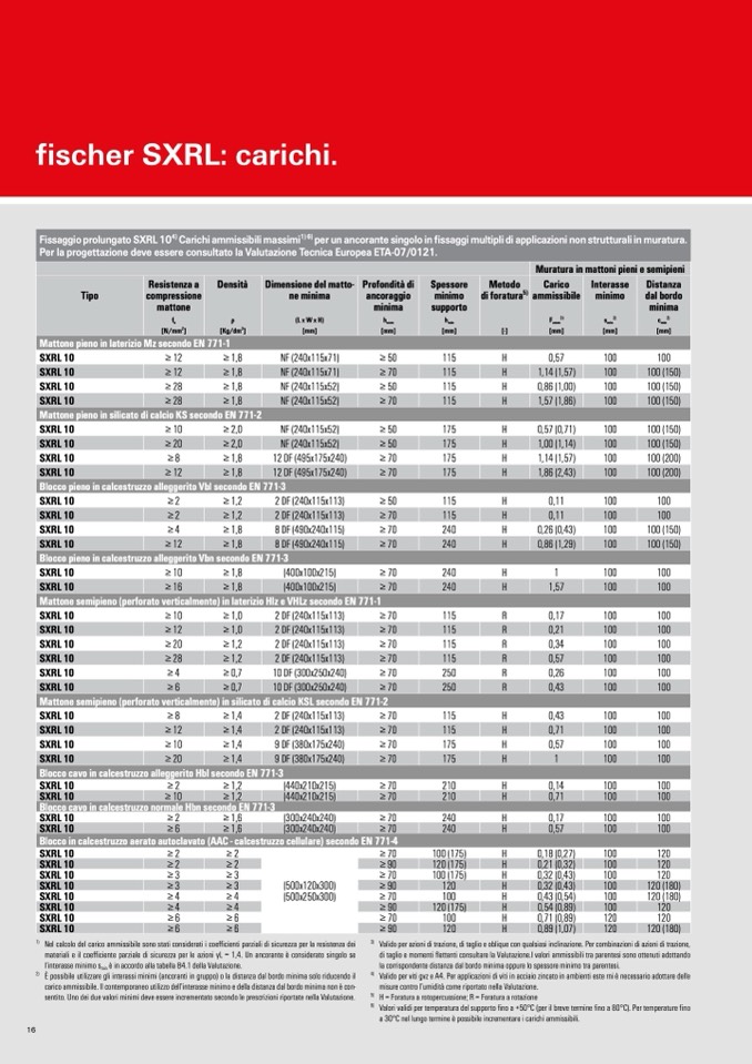 per un ancorante singolo in fissaggi multipli di applicazioni non strutturali in muratura.
