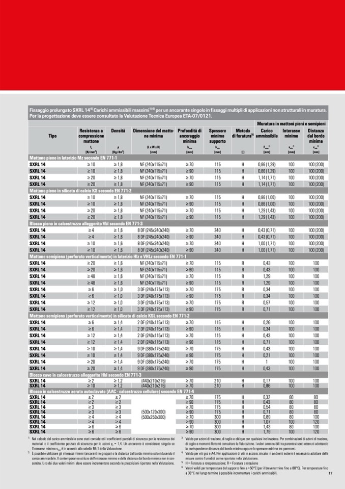 per un ancorante singolo in fissaggi multipli di applicazioni non strutturali in muratura.