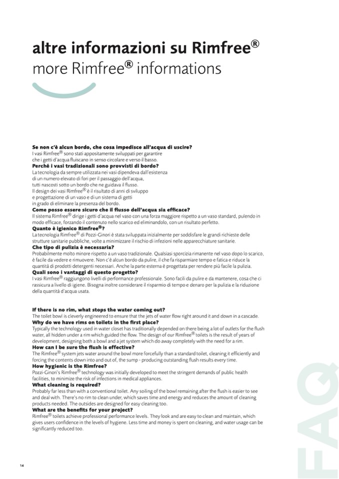 Pozzi-Ginori’s Rimfree® technology was initially developed to meet the stringent demands of public health