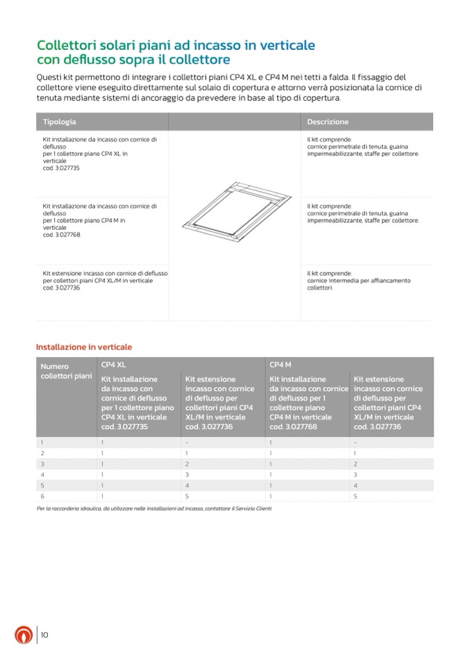 Questi kit permettono di integrare i collettori piani CP4 XL e CP4 M nei tetti a falda. Il fissaggio del