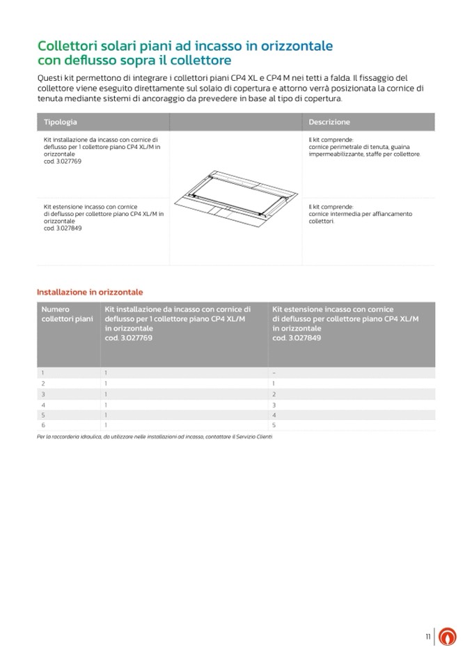 Questi kit permettono di integrare i collettori piani CP4 XL e CP4 M nei tetti a falda. Il fissaggio del
