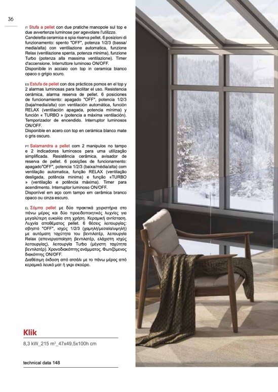 cerámica, alarma reserva de pellet. 6 posiciones