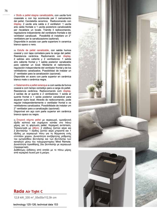 Στεγανή σόμπα pellet με αεραγωγό, ομοαξονική