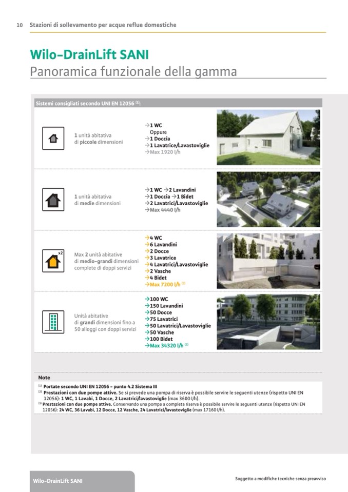 Prestazioni con due pompe attive. Conservando una pompa a completa riserva è possibile servire le seguenti utenze (rispetto UNI EN