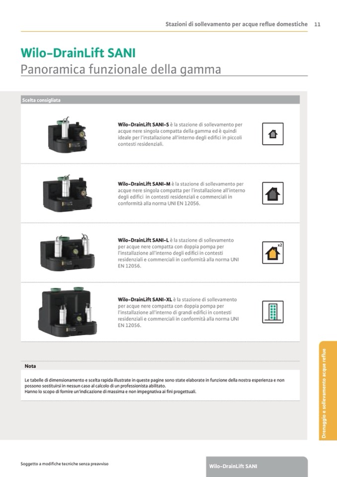 Le tabelle di dimensionamento e scelta rapida illustrate in queste pagine sono state elaborate in funzione della nostra esperienza e non
