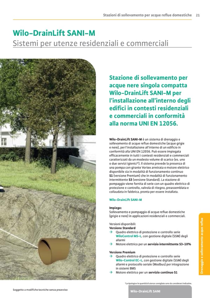 sollevamento di acque reflue domestiche (acque grigie