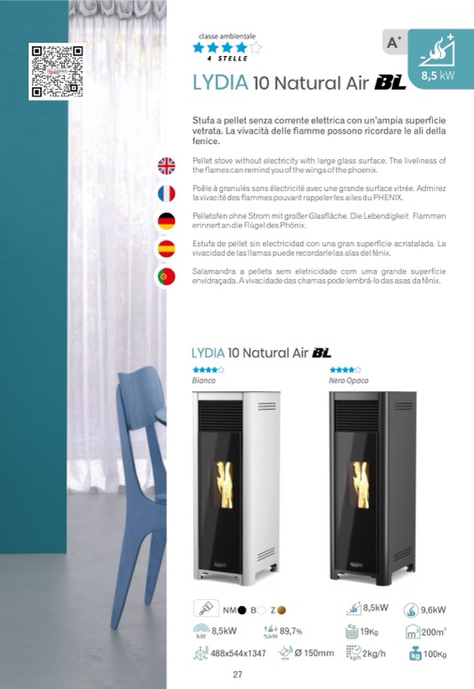 Stufa a pellet senza corrente elettrica con un’ampia supercie