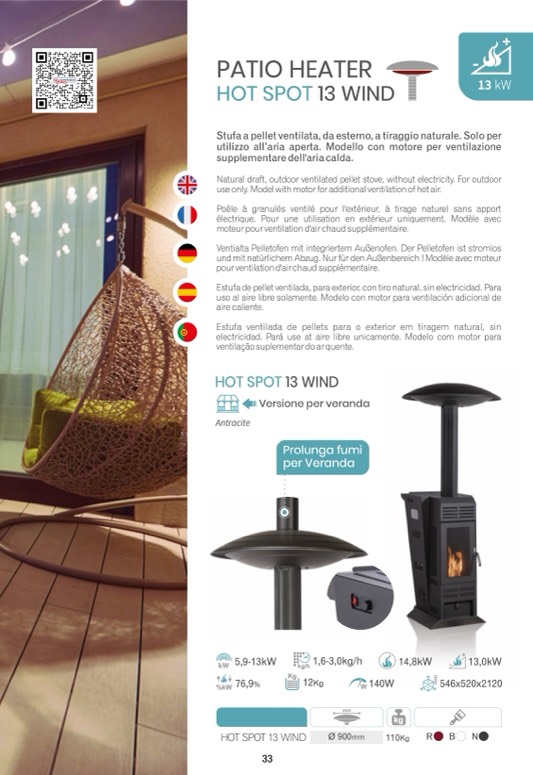 Stufa a pellet ventilata, da esterno, a tiraggio naturale. Solo per