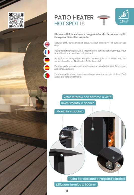 Stufa a pellet da esterno a tiraggio naturale. Senza elettricit