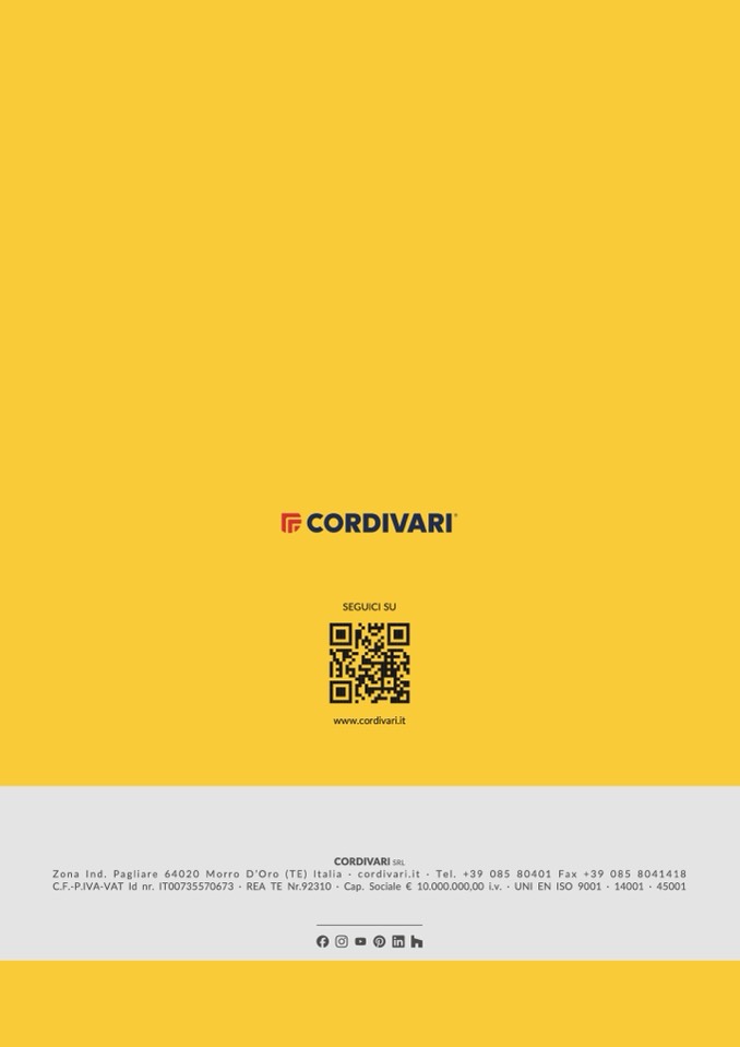 Zona Ind. Pagliare 64020 Morro D’Oro (TE) Italia · cordivari.it · Tel. +39 085 80401 Fax +39 085 8041418