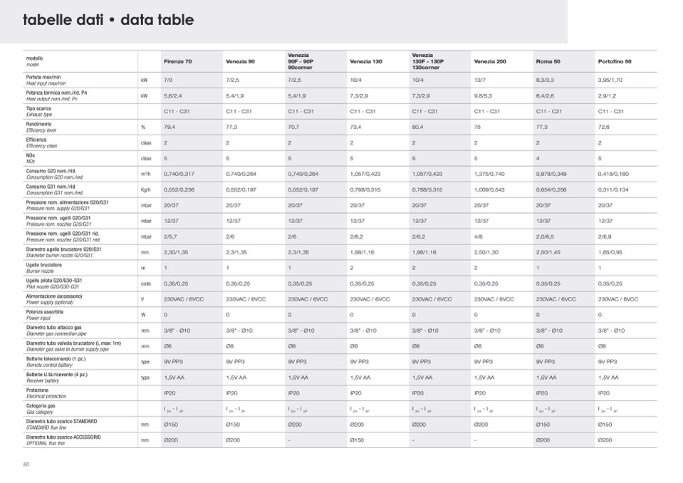 Pressione nom. ugelli G20/G31