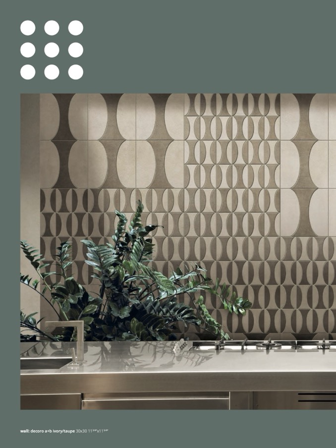 wall: decoro a+b ivory/taupe 30x30 113/4”x113/4”