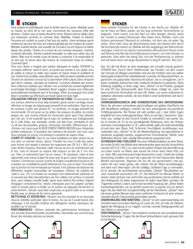 NETTOYAGE ET ENTRETIEN: «Sticker» est très résistant et ne nécessite
