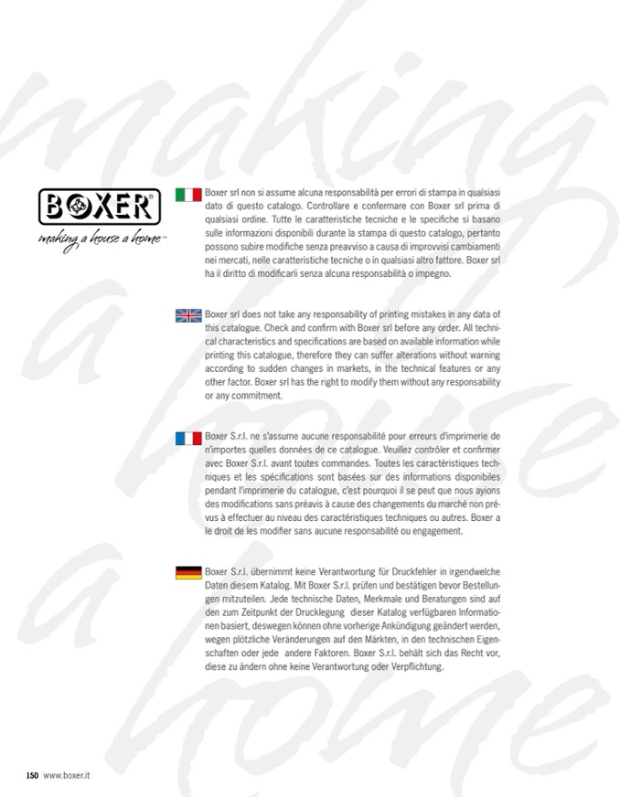 Boxer srl non si assume alcuna responsabilità per errori di stampa in qualsiasi