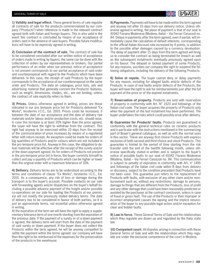 terms and conditions of clause “Ex Works”, Incoterms I.C.C., Ed.