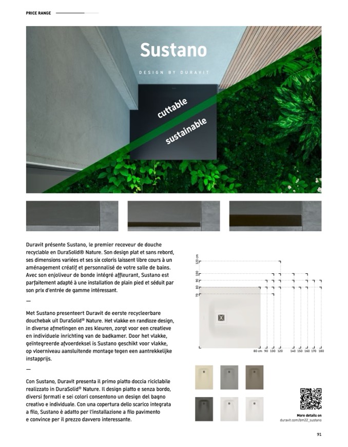 Con Sustano, Duravit presenta il primo piatto doccia riciclabile
