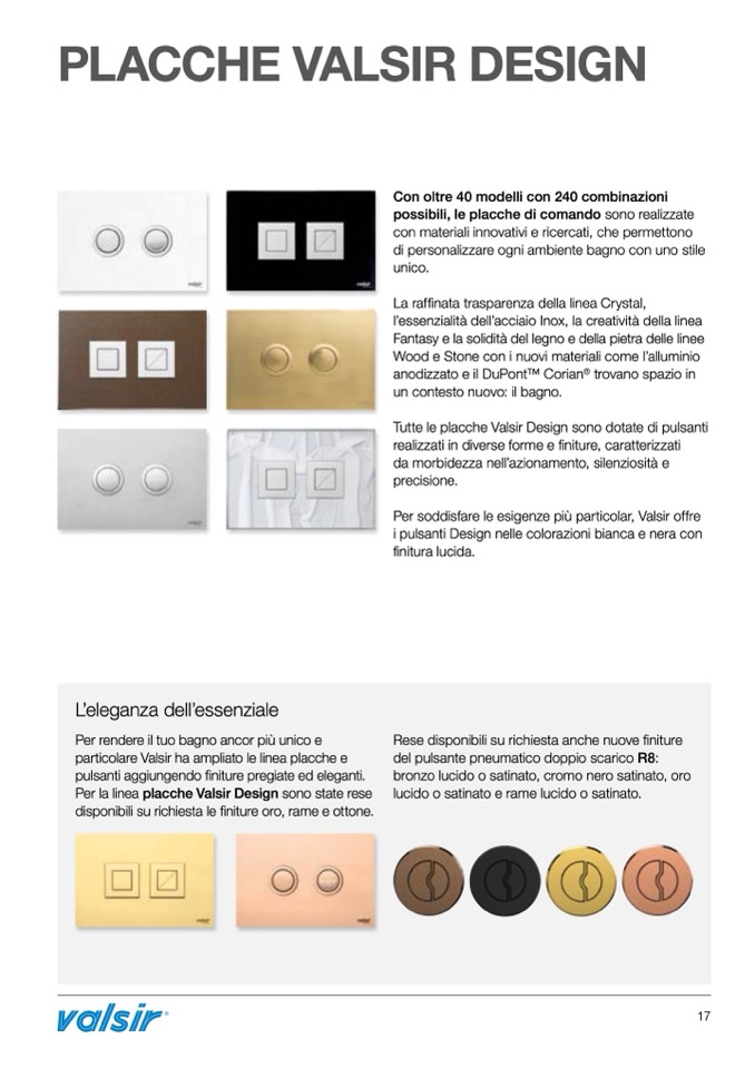 Tutte le placche Valsir Design sono dotate di pulsanti