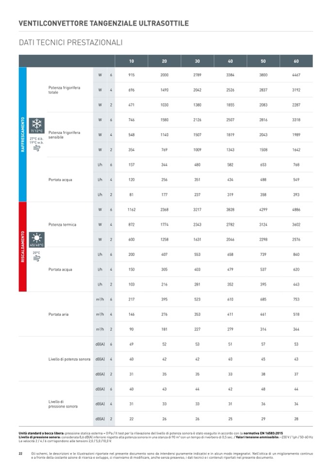 Unità standard a bocca libera: pressione statica esterna = 0 Pa / Il test per la rilevazione del livello di potenza sonora è stato eseguito in accordo