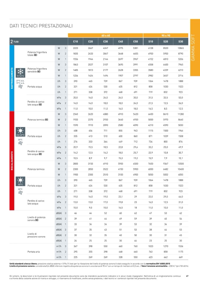 Unità standard a bocca libera: pressione statica esterna = 0 Pa / Il test per la rilevazione del livello di potenza sonora è stato eseguito in accordo con la normativa EN 16583:2015
