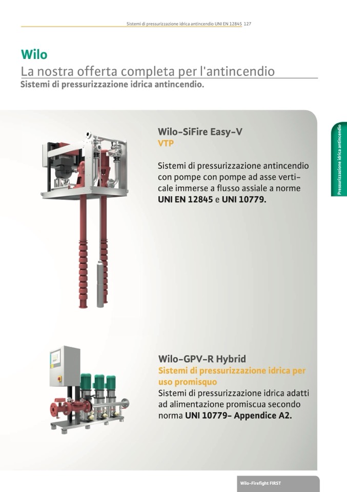 Sistemi di pressurizzazione idrica antincendio UNI EN 12845 127