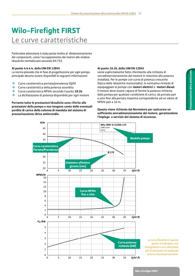 La norma prevede che in fase di progettazione per ogni pompa