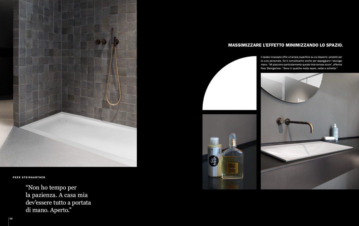 Il lavabo incassato offre un’ampia superficie su cui disporre i prodotti per
