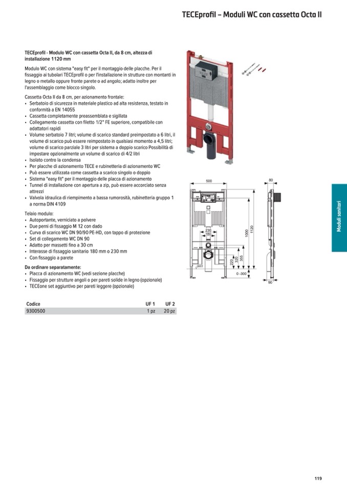 TECEprofil - Modulo WC con cassetta Octa II, da 8 cm, altezza di