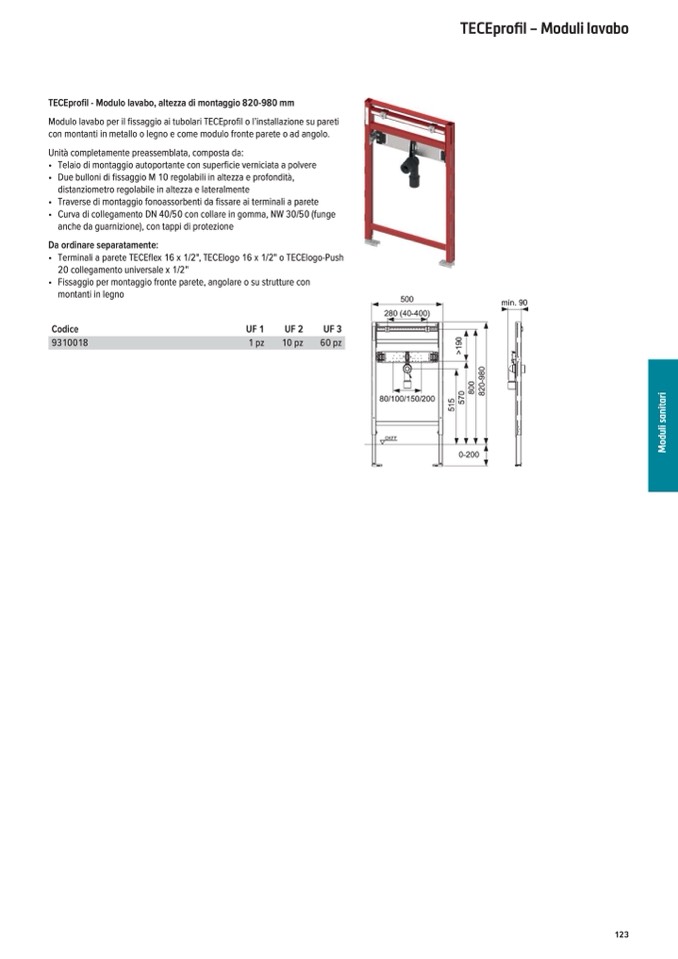 TECEprofil - Modulo lavabo, altezza di montaggio 820-980 mm