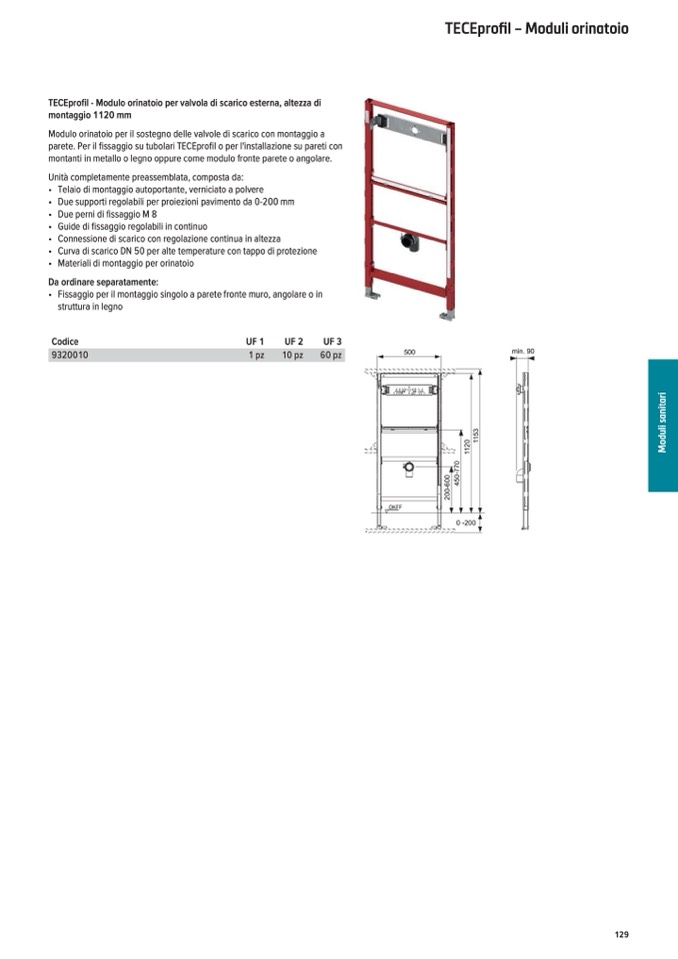 TECEprofil - Modulo orinatoio per valvola di scarico esterna, altezza di