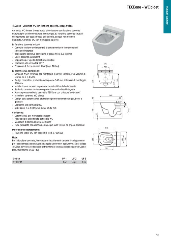 TECEone - Ceramica WC con funzione doccetta, acqua fredda