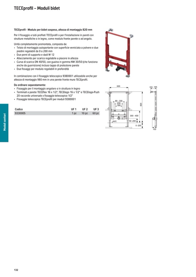 • Fissaggio telescopico TECEprofil per moduli 9380001