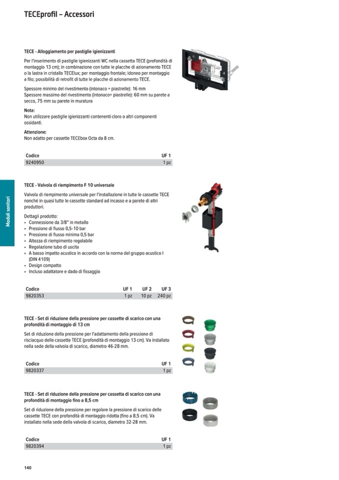 TECE - Set di riduzione della pressione per cassetta di scarico con una