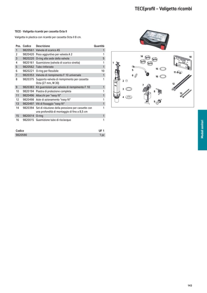 Valigetta in plastica con ricambi per cassetta Octa II 8 cm.