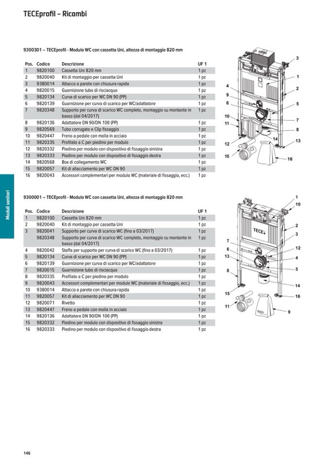9300001 – TECEprofil - Modulo WC con cassetta Uni, altezza di montaggio 820 mm