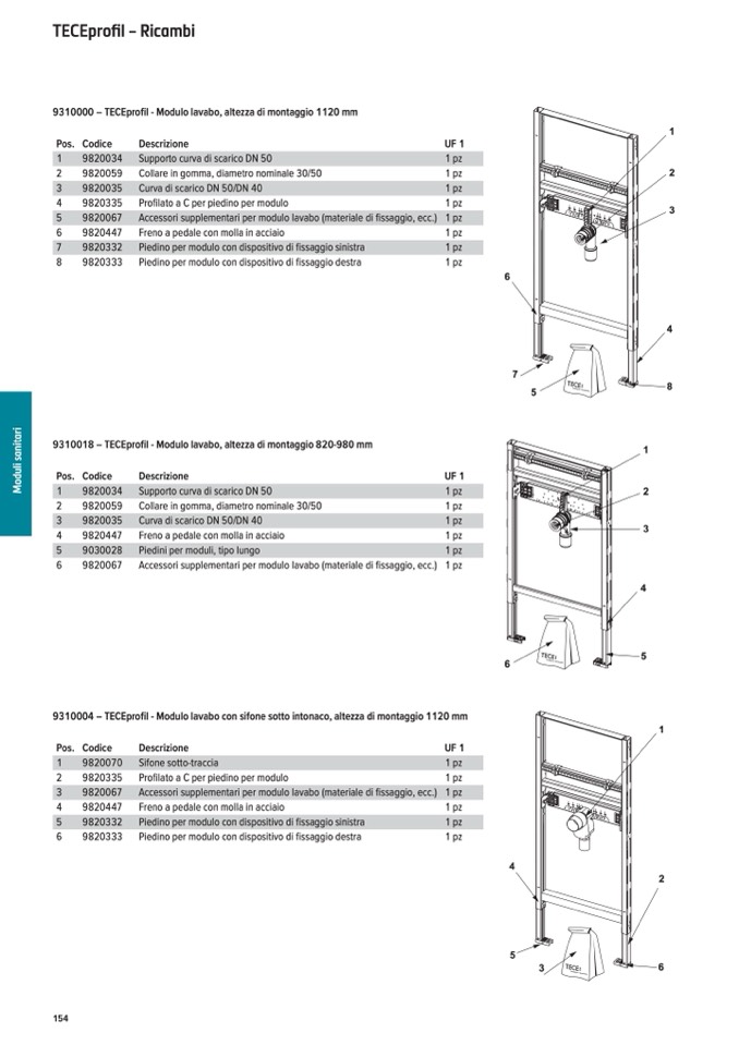 9310000 – TECEprofil - Modulo lavabo, altezza di montaggio 1120 mm