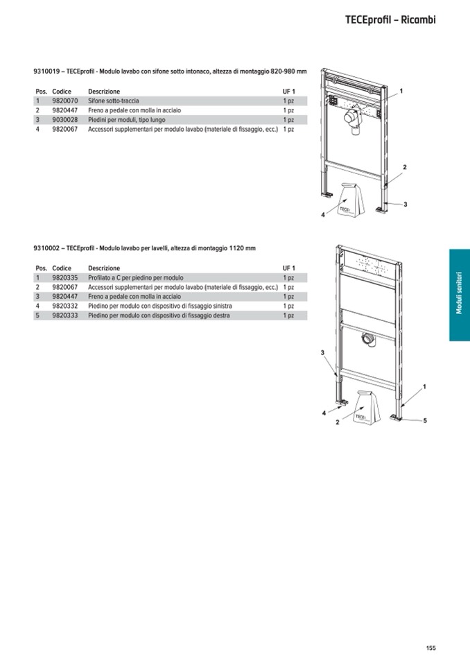 9310002 – TECEprofil - Modulo lavabo per lavelli, altezza di montaggio 1120 mm