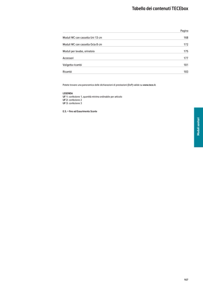 Potete trovare una panoramica delle dichiarazioni di prestazioni (DoP) valide su www.tece.it.